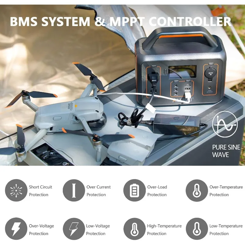 【Power 9 Devices simultaneously】With 9 AC USB DC ports, equipped with 2* AC PURE SINE WAVE outlets for your 110V/120V Devices, 1*USB-C PD 60W output, 2* USB-A, 1* car cigarette lighter for car appliances, 3* DC ports. The battery generator can power daily essential devices like CPAP, drone, phones, laptop, camera, RV cooler, RV fridge,etc.